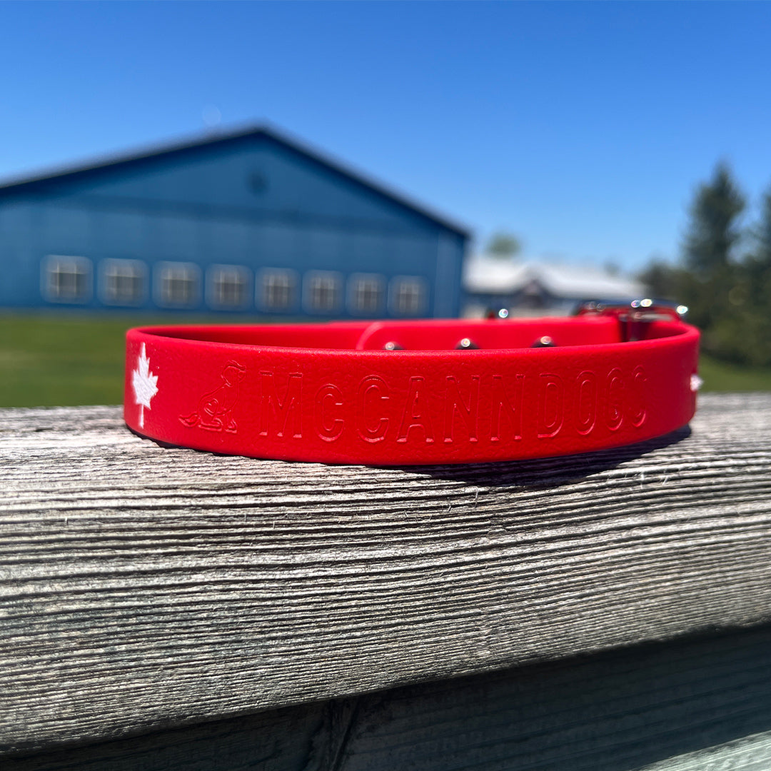 Crafted with care right here in Canada, our "O Canada Collars" are a celebration of quality, durability, and everyday style that stands out. Featuring a bold red design with a crisp white maple leaf, these collars are more than just pet accessories—they're a tribute to the Great White North.